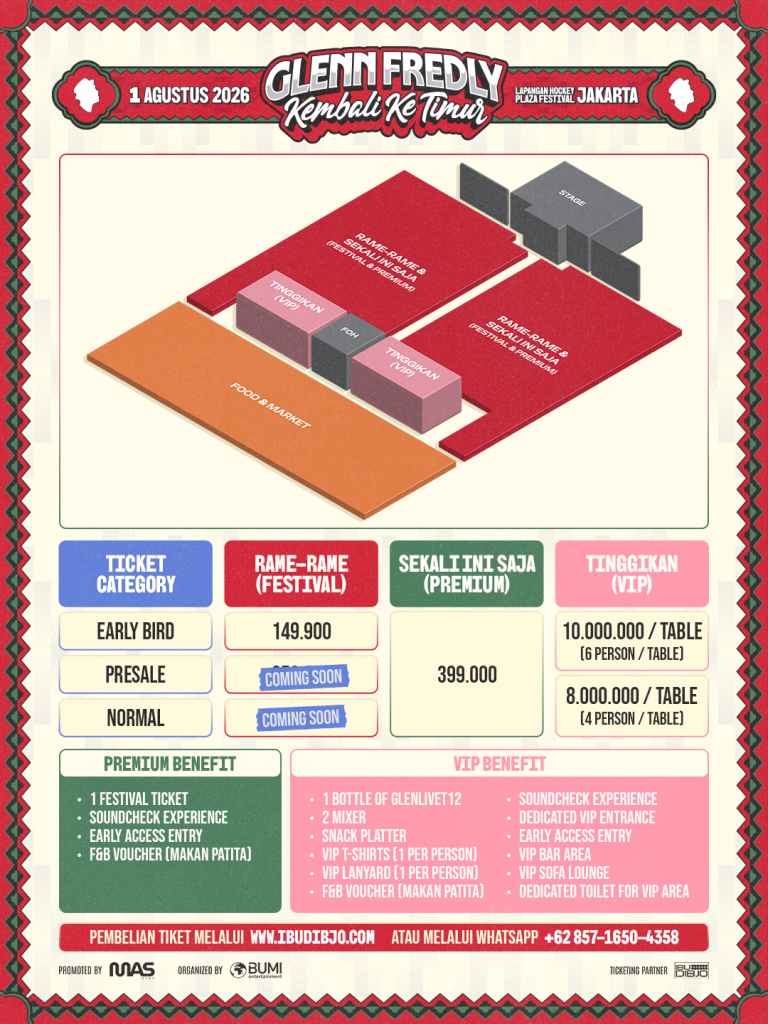 Lineup musisi akan diumumkan secara berkala melalui Instagram resmi @glennfredlymusik.