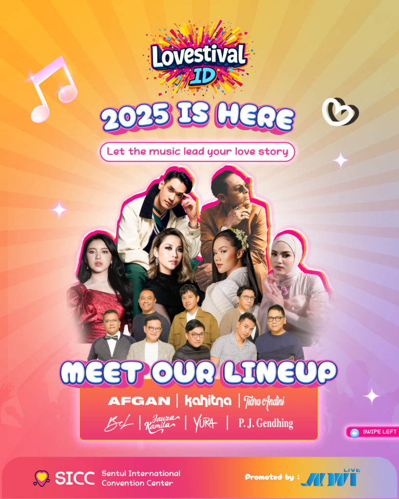 Jangan lewatkan Lovestival ID 2025 pada 20 Desember mendatang di Sentul International Convention Center. Siapkan diri untuk merasakan pengalaman musik terbaik di penghujung tahun!